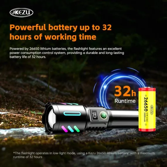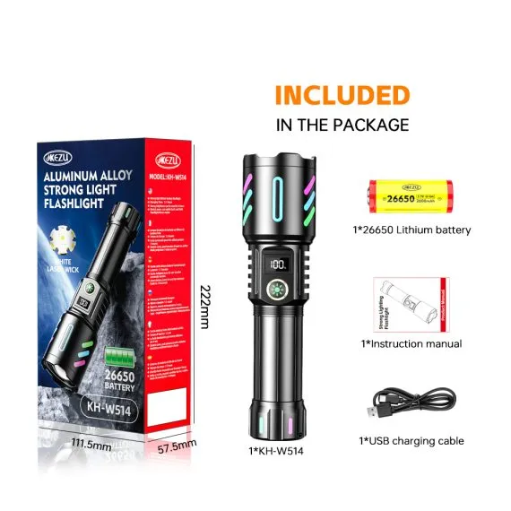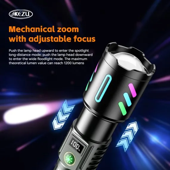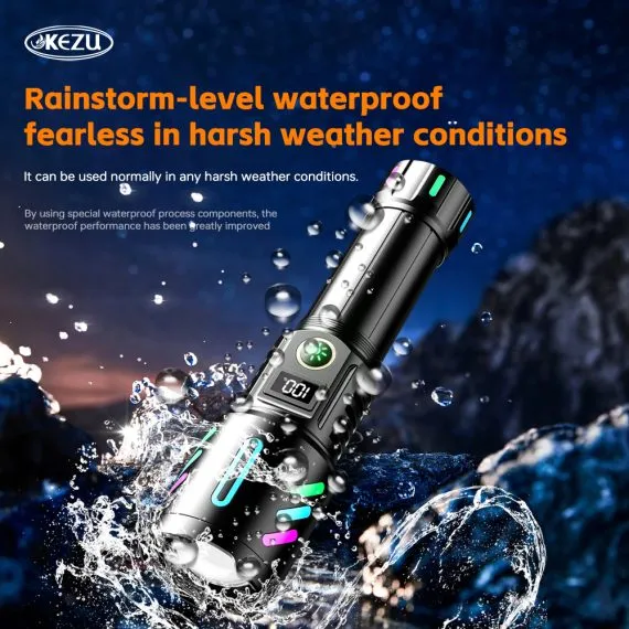 Kezu Aluminum Alloy Strong Light Flashlight , Power Display , Night Fluorescent Strip ( KH – W515 )